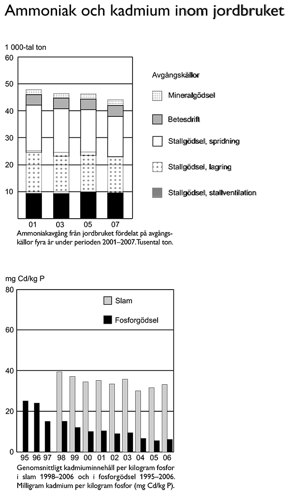 30. Vilket år noterades den lägsta halten kadmium per kilogram fosfor i slam respektive i fosforgödsel?